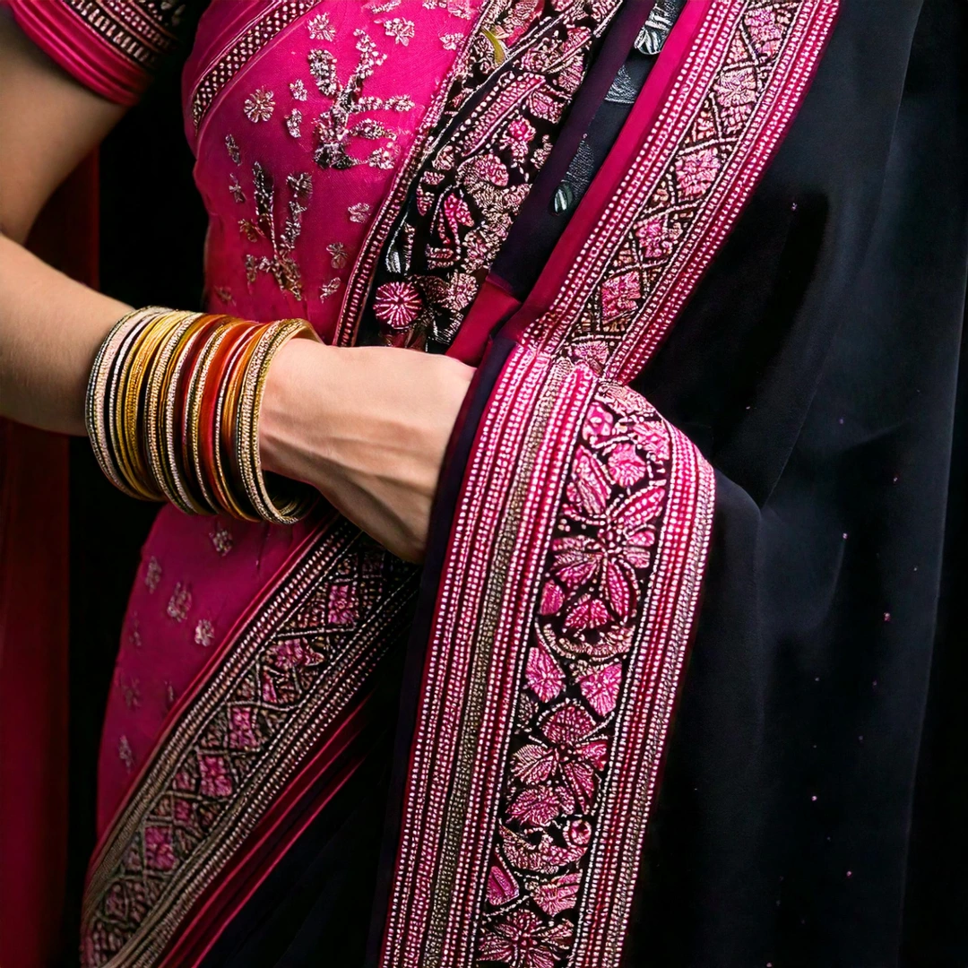 «Sari élégant mauve à motif noir» a été ajouté à votre panier.