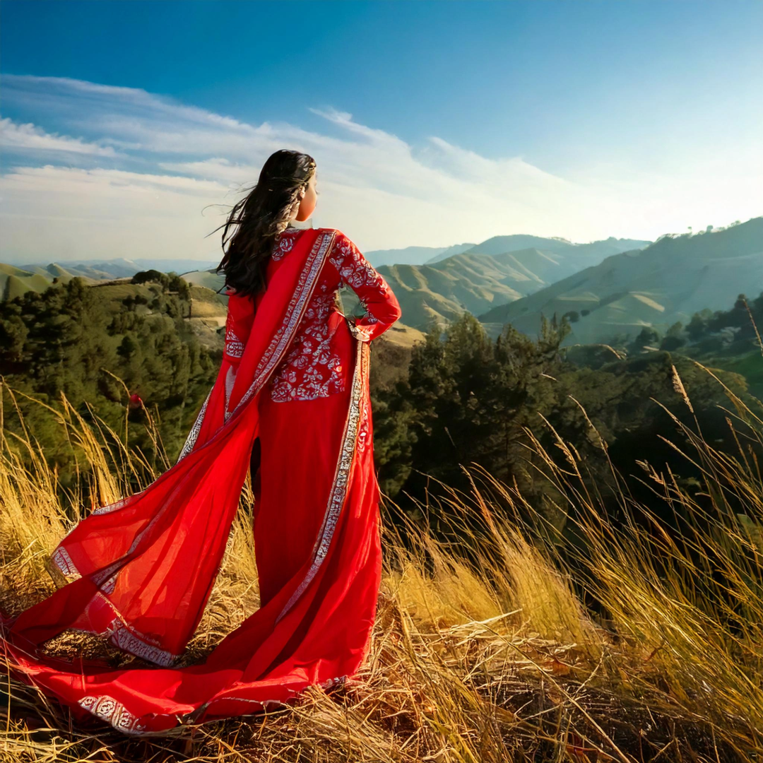 Salwar kameez rouge à motif
